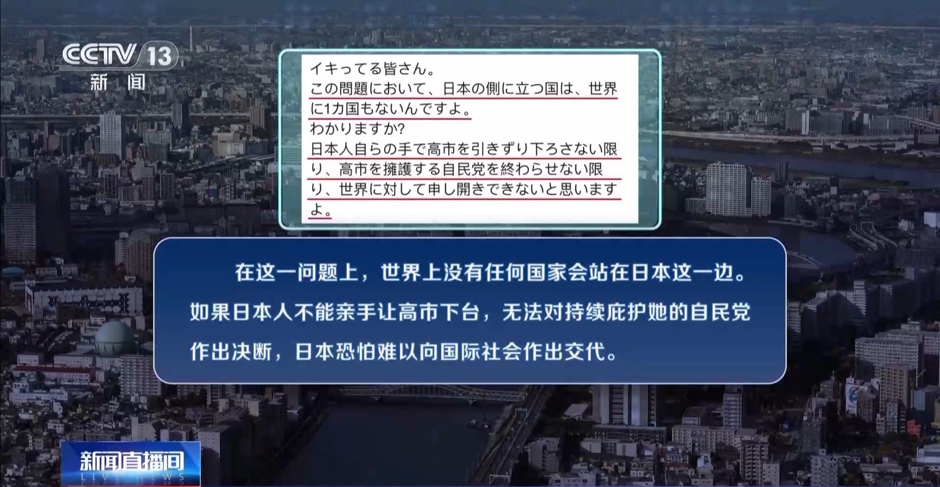 还有网友表示,“在这一问题上,世界上没有任何国家会站在日本这一边。如果日本人不能亲手让高市下台,无法对持续庇护她的自民党作出决断,日本恐怕难以向国际社会作出交代。”