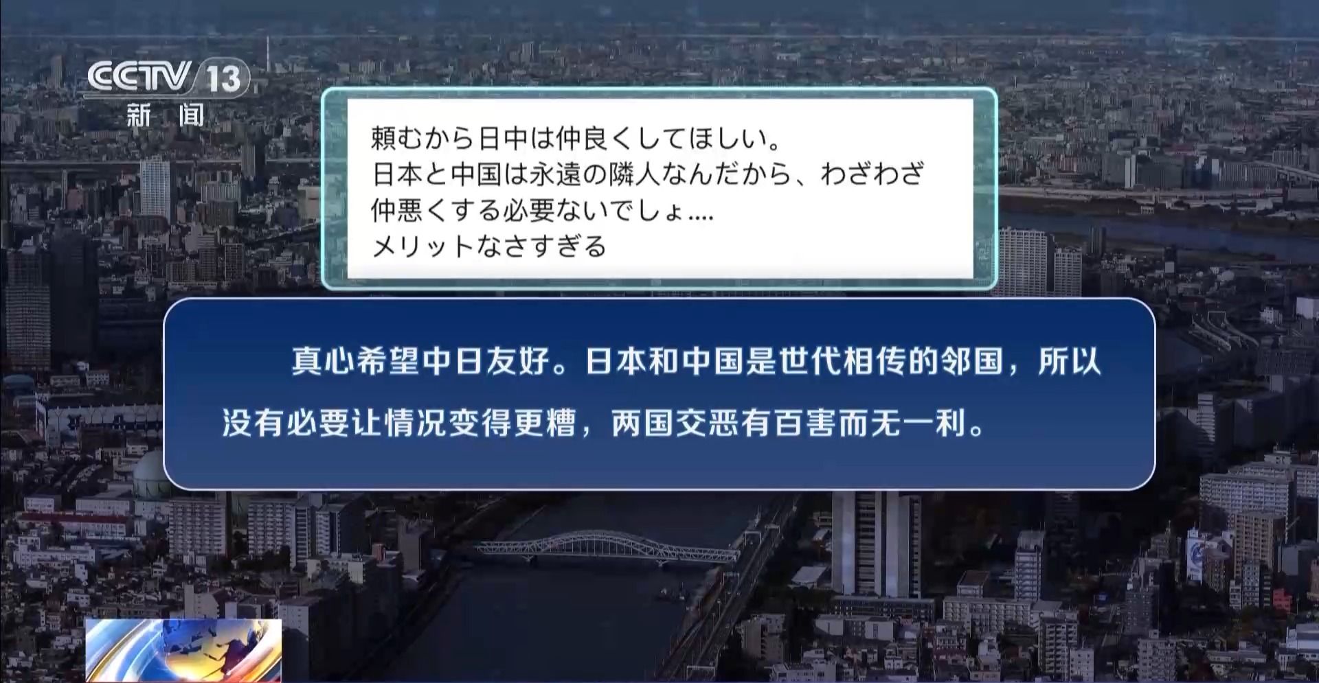 还有网友表示,“真心希望中日友好。日本和中国是世代相传的邻国,所以没有必要让情况变得更糟,两国交恶有百害而无一利。”