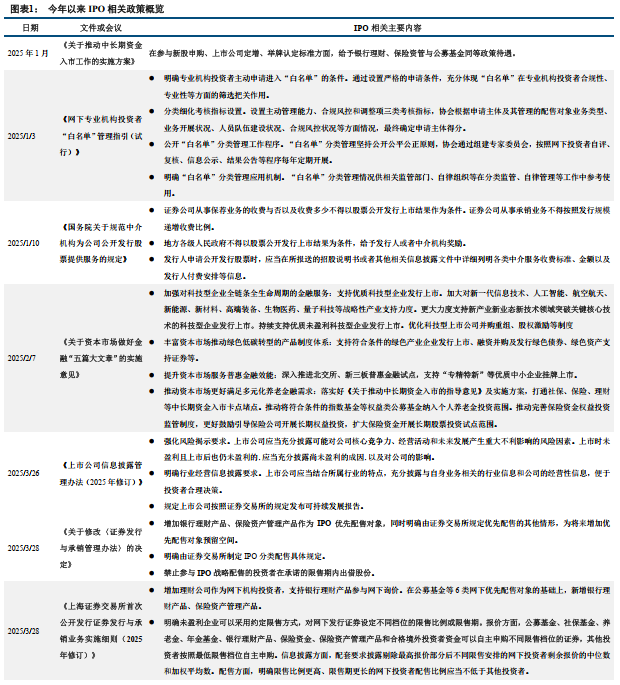 今年上半年IPO政策一大亮点。2025年1月,中央金融办、中国证监会、财政部、人力资源社会保障部、中国人民银行、金融监管总局联合印发《关于推动中长期资金入市工作的实施方案》,重点引导商业保险资金、全国社会保障基金、基本养老保险基金、企(职)业年金基金、公募基金等中长期资金进一步加大入市力度。该方案中表示在参与新股申购、上市公司定增、举牌认定标准方面,给予银行理财、保险资管与公募基金同等政策待遇。3月28日,证监会发布《关于修改〈证券发行与承销管理办法〉的决定》,正式增加银行理财产品、保险资产管理产品作为IPO优先配售对象,即升级为A类账户。